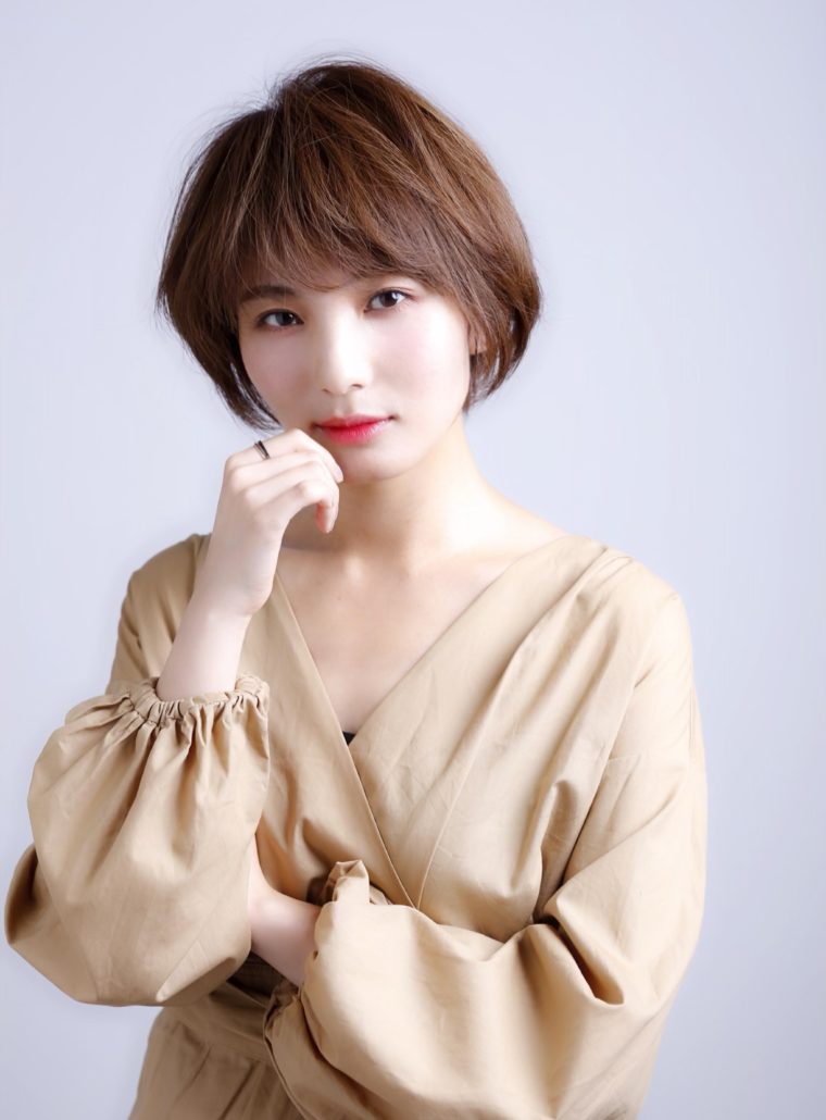 Name 大人×きれい×スタイリッシュショート Data 長さショート イメージナチュラル カラーブラウン系・ベージュ系 Point 。ウエイトを少し高めに設定し丸くなりすぎず襟足がコンパクトに収まるスタイルです。カラーは顔色が綺麗に見える柔らかいベージュです。 担当スタイリスト