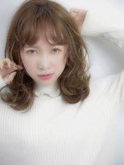 Name 20代30代×イエローベージュ Data 長さミディアム イメージカジュアル・ガーリー カラーブラウン系・ベージュ系 Point 動きがしっかり出るように中間から26ミリでミックスに巻きました。多毛、くせ毛の方は普段よりスタイリング剤をしっかりと中間からなじませるといいです。 担当スタイリスト